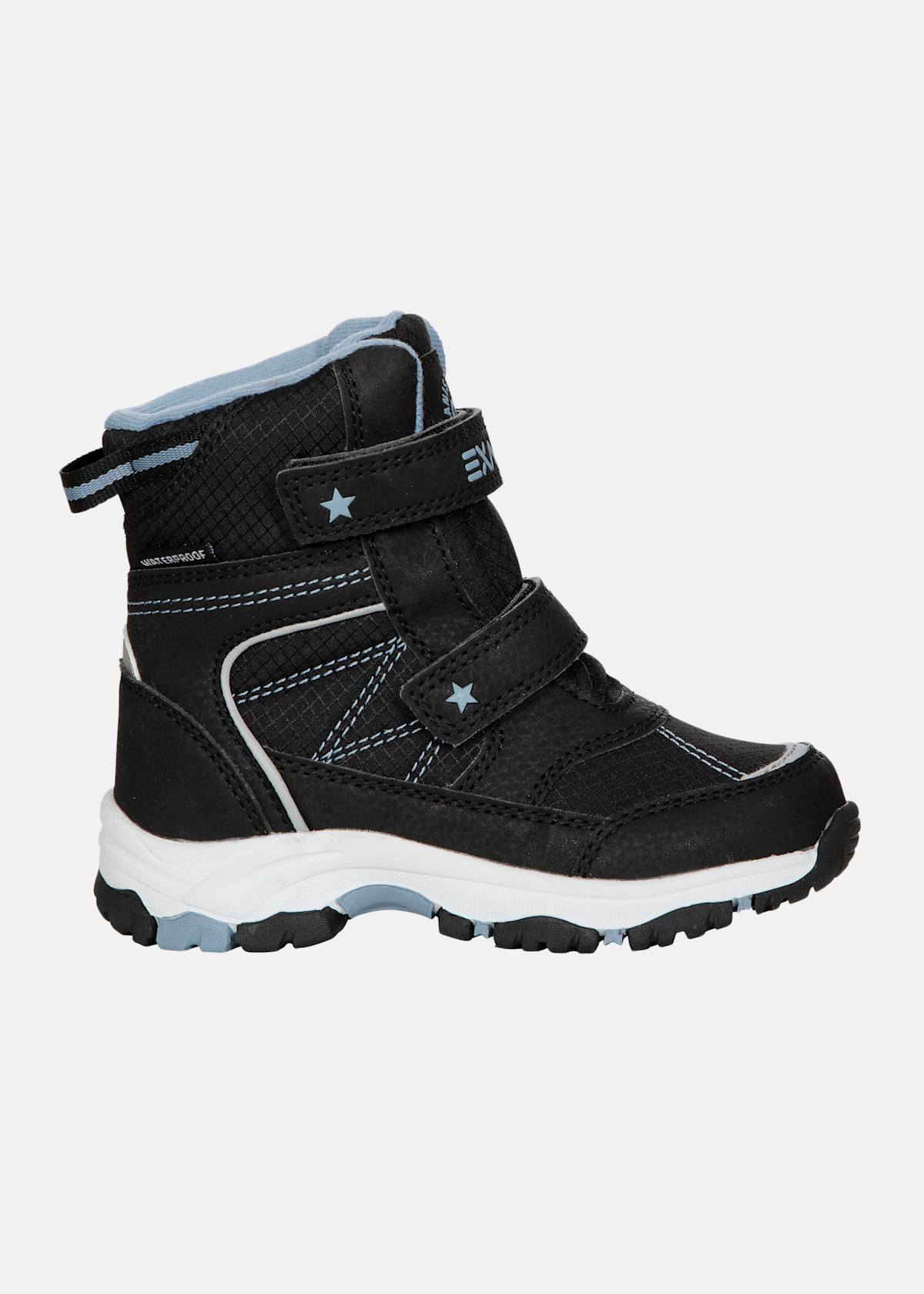 Aiden Jr. är ett par vattentäta stövlar med kardborreband från Exani! . Vattentät ovandel . Fodrad insida . Slitstark yttersula . Kardborrestängning Möt Aiden Jr, den vattentäta kängan från Exani. Stövlarna har en slitstark yttersula och en vattentät överdel samt en fodrad insida för maximal komfort. Den lättanvända kardborreknäppningen ger en säker passform, så att ditt barn kan leka hela dagen utan att oroa sig för att stövlarna ska glida av. Oavsett om de plaskar i vattenpölar eller utforskar naturen kommer Aiden Jr. att ge det ultimata skyddet och stödet. Beställ ditt par idag och låt ditt barn gå ut med stil!