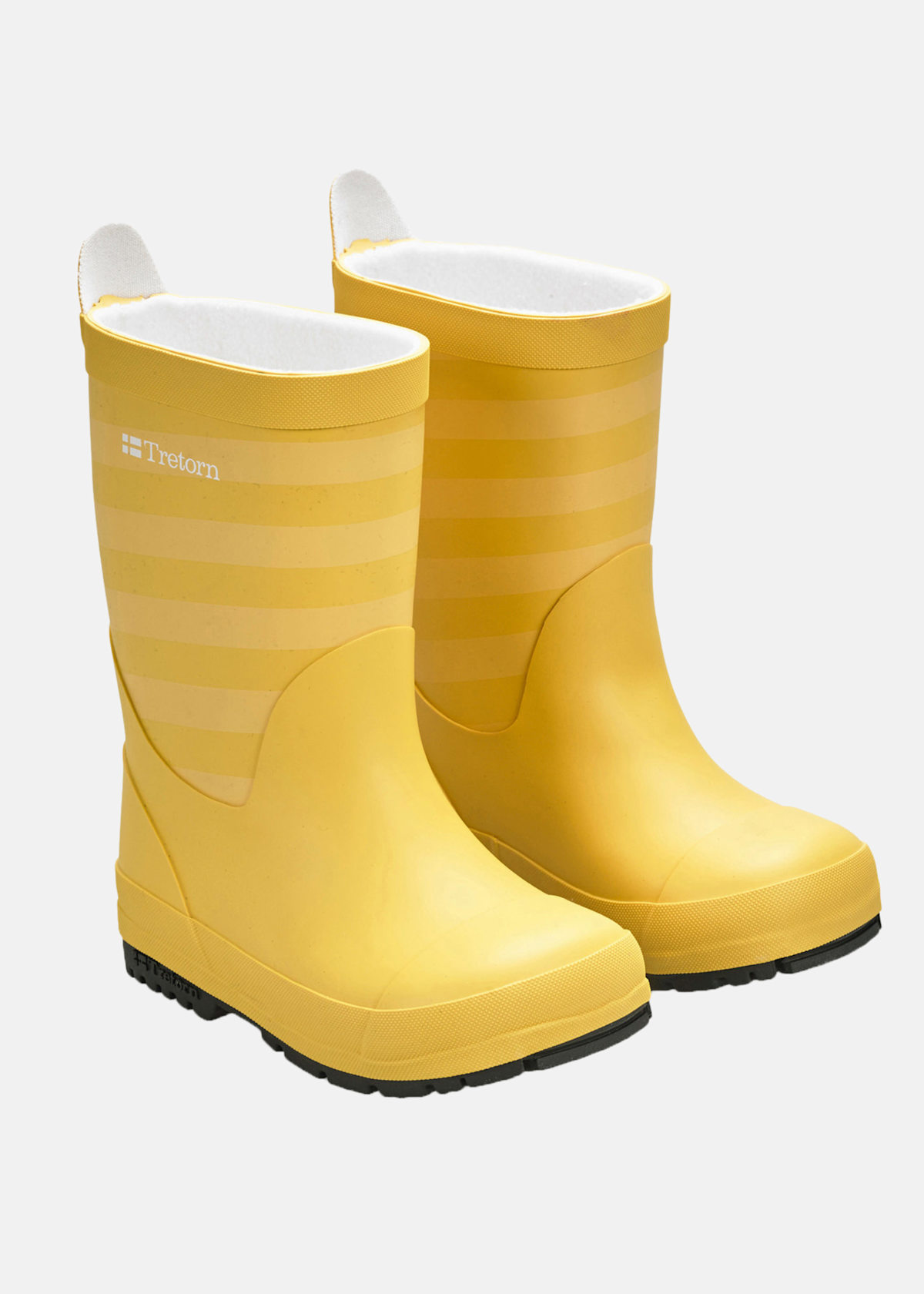 Klassisk och populär regnstövel med högt skaft från Tretorn! . Neopren foder . Tålig yttersula med ett bra grepp . Anatomisk innersula . Reflex baktill . Vattentätt, PVC-fritt material . Lätt att ta på och av . Extra bra hälgrepp Gränna är en speciellt designad vattentät och ofodrad stövel för små äventyrare, och dess glada färger och lekfulla ränder gör den till en färgstark följeslagare även under gråa dagar. Med en tålig yttersula för utmärkt grepp på hala ytor och en anatomisk passform som ger stöd och rörelsefrihet för små fötter, är den idealisk för barnens äventyr. Stöveln inkluderar även en reflex baktill för extra synlighet. Gränna är det perfekta valet för föräldrar som vill se sina barn glada och lekfulla i regnet!